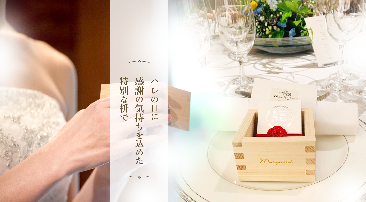オリジナルのデザインや名入れがされた枡、商品を彩るオーダーメイド゙の木箱、独自の木製品など、