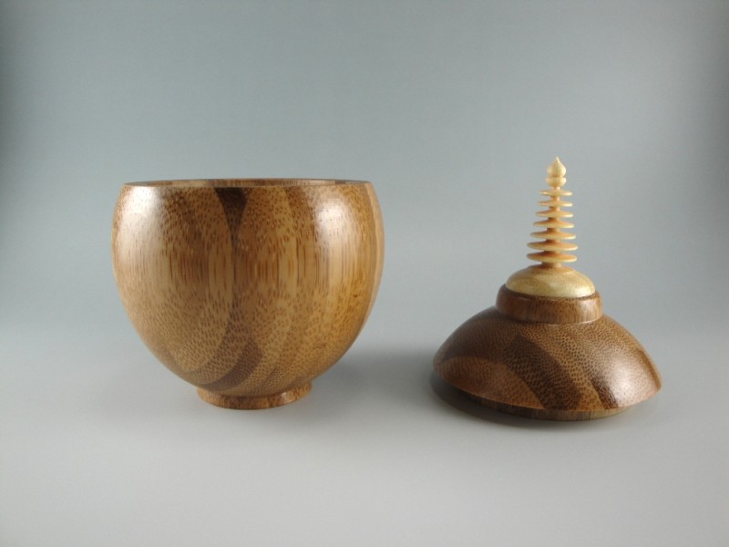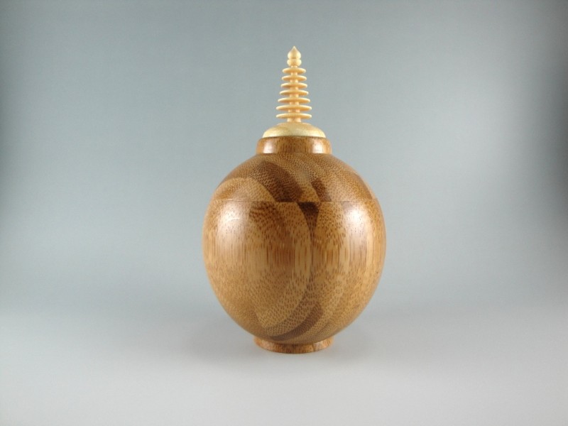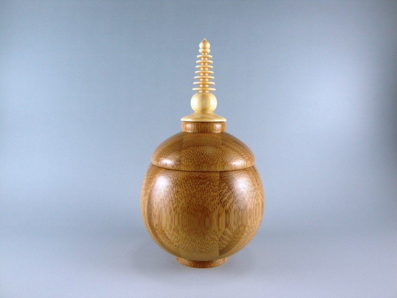 厳しい品質チェックを受けた竹材の塊りを弊社と西洋木工ロクロ作家の第一人者、井上重信氏とのコレボレーションにより削りだして手元供養として作り上げました。