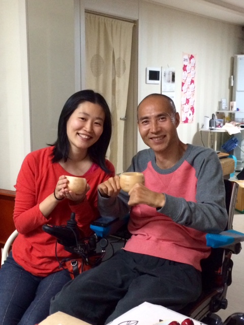 「先日、また韓国に行き、御夫婦に会い、丸枡をとても喜んでおられました。旦那様のFさん、奥様、Mさんは勿体なくてまだ飲めないと、御自宅に飾られておりました。旦那様のFさんはソウルの障碍者協会の会長様で、厚生省から名誉勲章を受けた方で枡の意味等ご理解頂き、とても感謝致します。と申しておりました。」