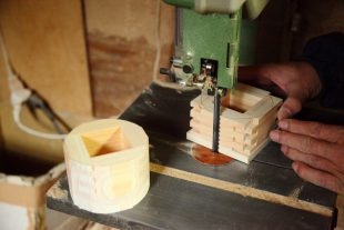 これだけの厚い板をしっかり組むこと自体が大変で、丸く削るのも大変です。