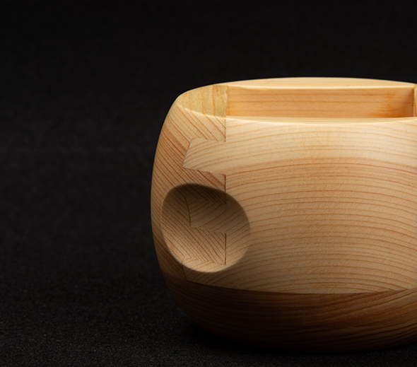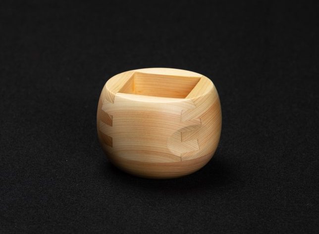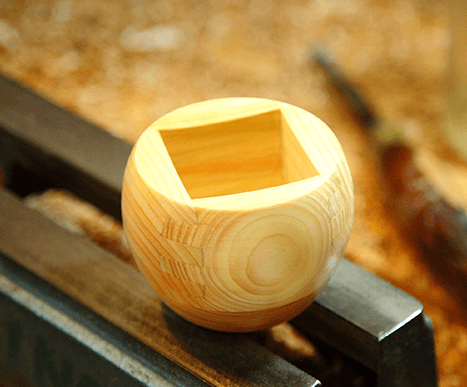 と考えていたところ「丸い枡があったらコップのように難なく使えるのでは!」と思い、製作をスタートしました。