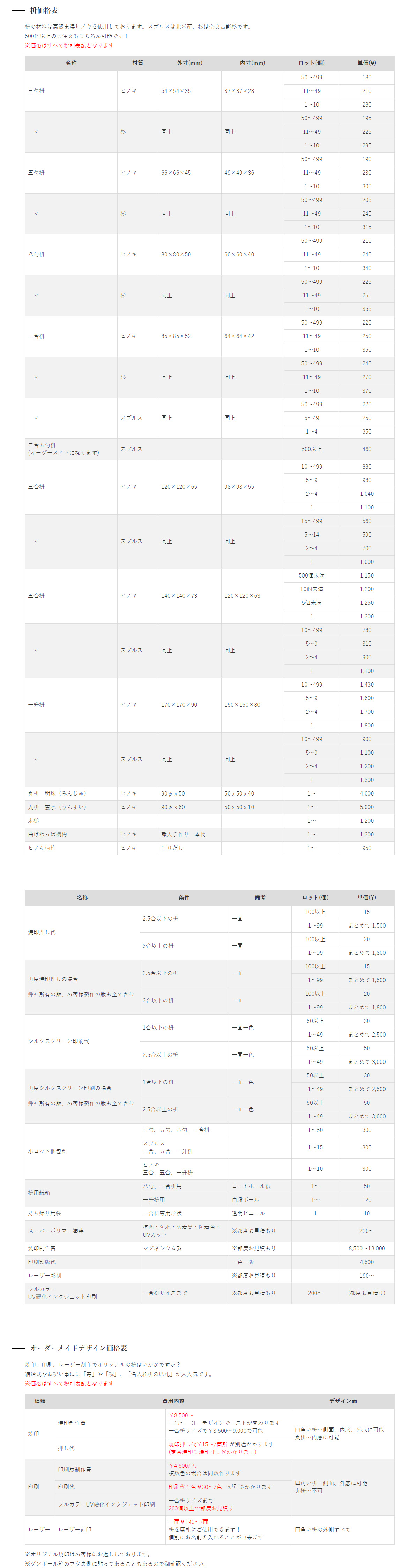 小ロット梱包料 三勺、五勺、八勺、一合枡   1~50 330