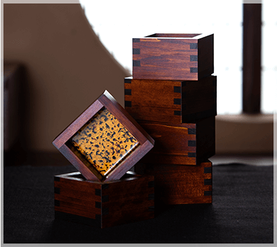 枡の材料は高級東濃ヒノキを使用しております。スプルスは北米産、杉は奈良吉野杉です。